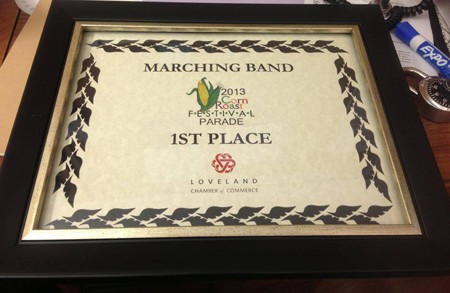 Loveland Corn Roast Parade Posted on August 19, 2013January 19, 2015 by David Hawley The 2013 LHS Crimson Regiment made their first public appearance at the 2013 Corn Roast Parade on Saturday, August 24. For their efforts, they took 1st place in the Marching Bands Division. Congratulations!